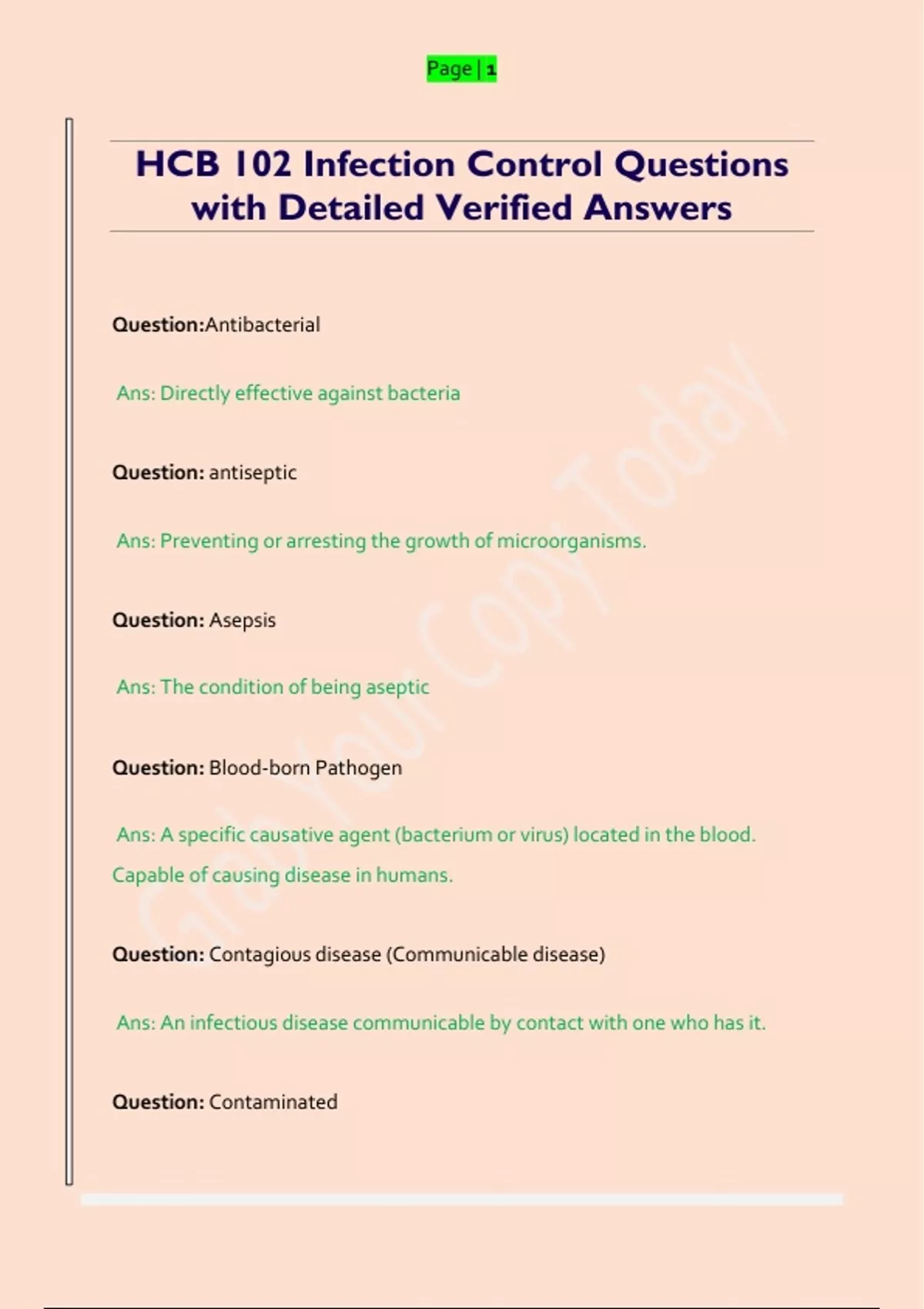 HCB 102 Infection Control Questions