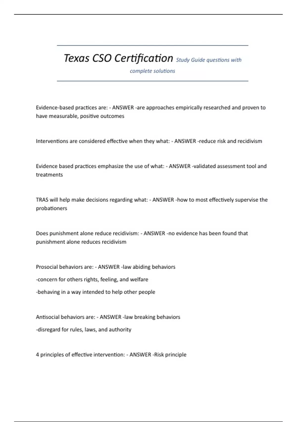 Interventions are considered effective when they what: - ANSWER -reduce risk and recidivism