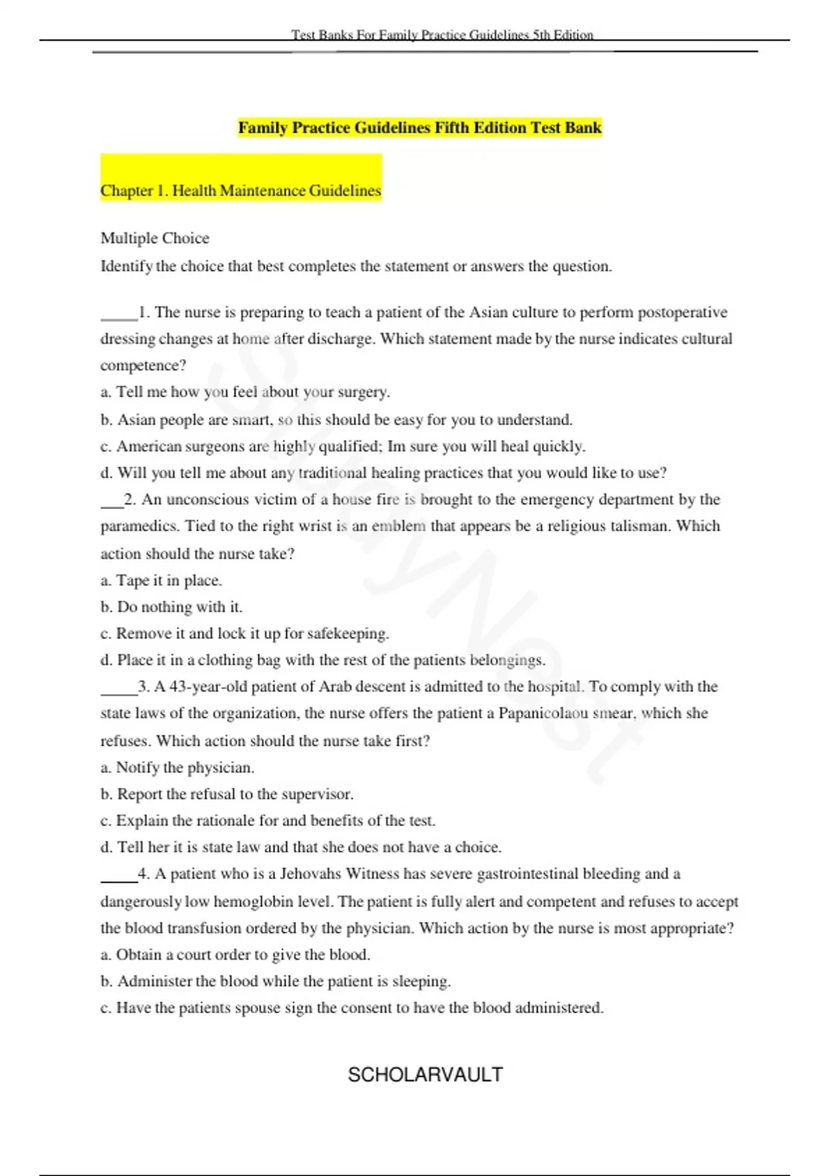 1. The nurse is preparing to teach a patient of the Asian culture to perform postoperative