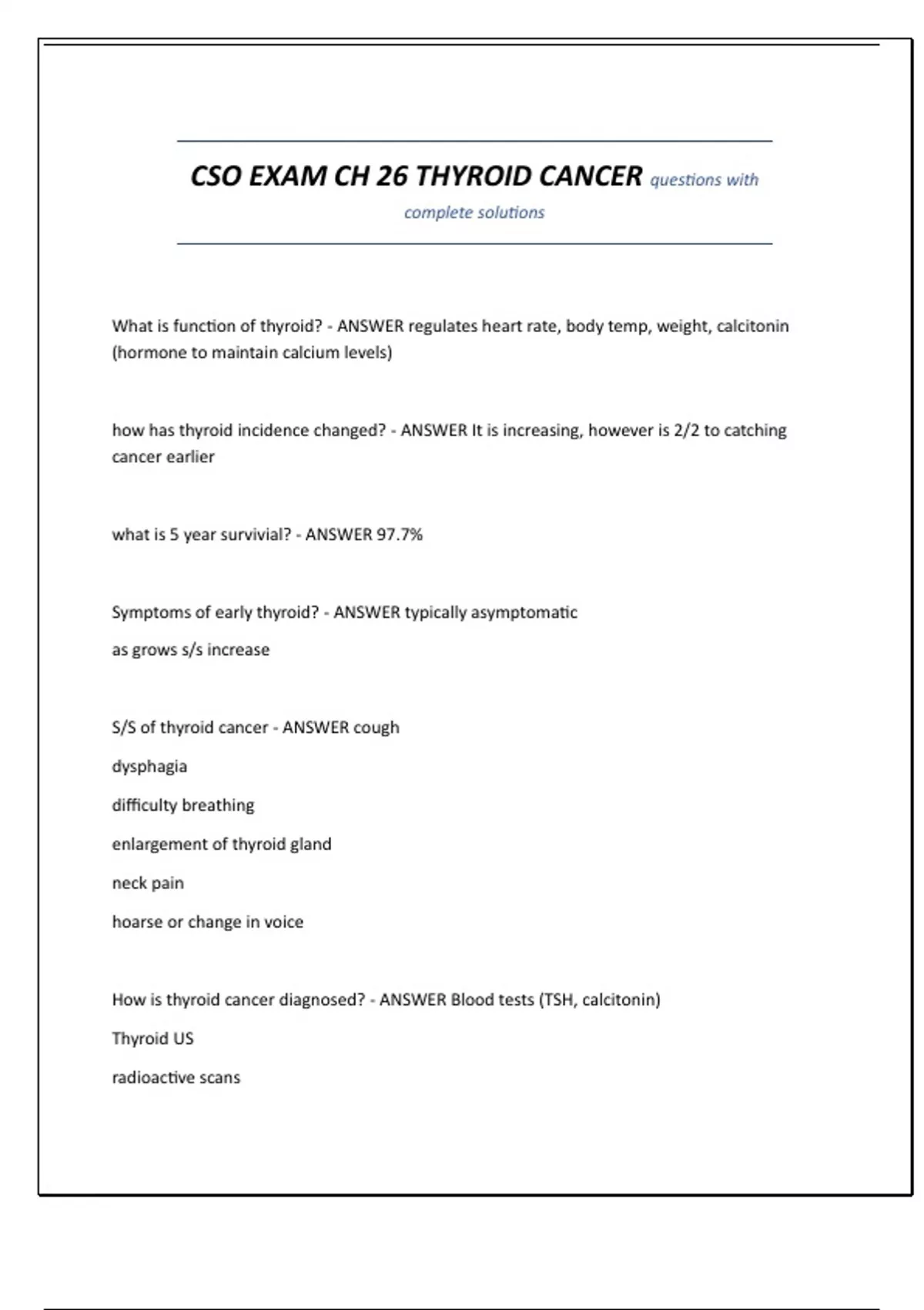 CSO EXAM CH 26 THYROID CANCER questions with complete solutions.