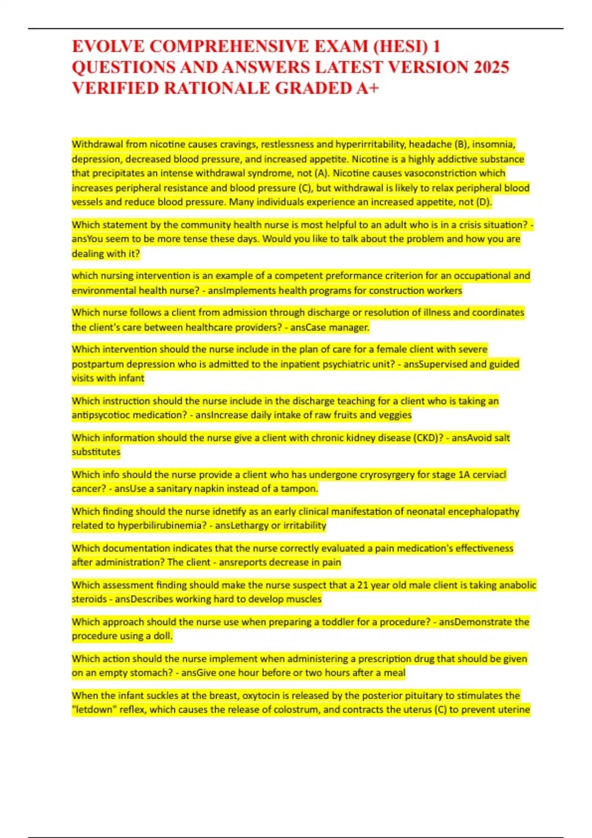 , EVOLVE COMPREHENSIVE EXAM (HESI) 1