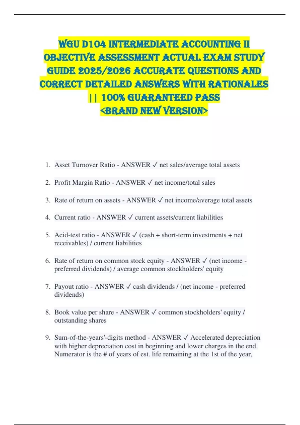 1. Asset Turnover Ratio - ANSWER ✓ net sales/average total assets