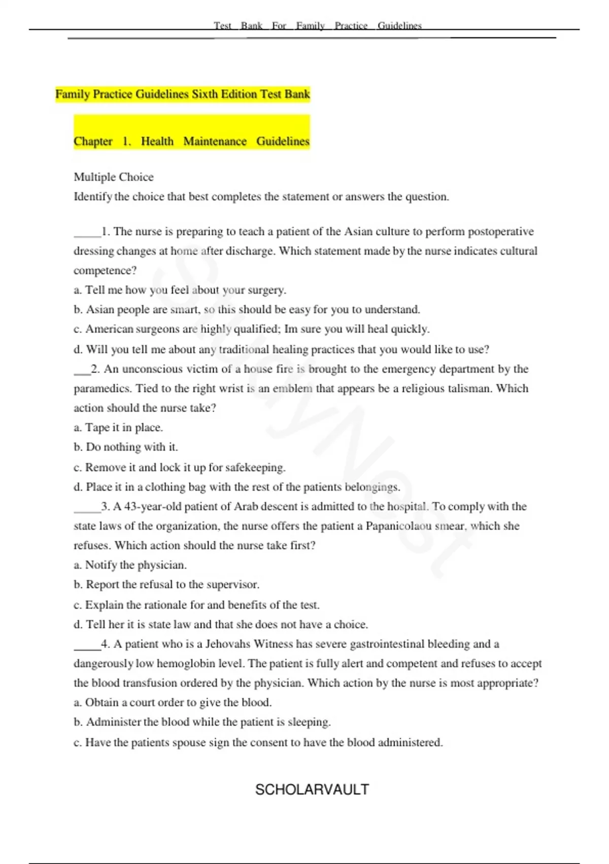 Family Practice Guidelines Sixth Edition Test Bank