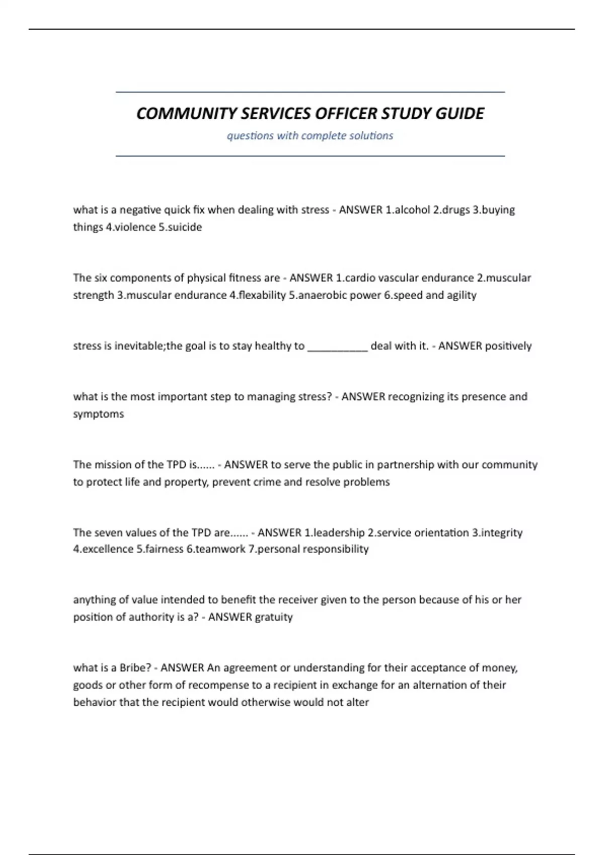 The seven values of the TPD are...... - ANSWER 1.leadership 2.service orientation 3.integrity