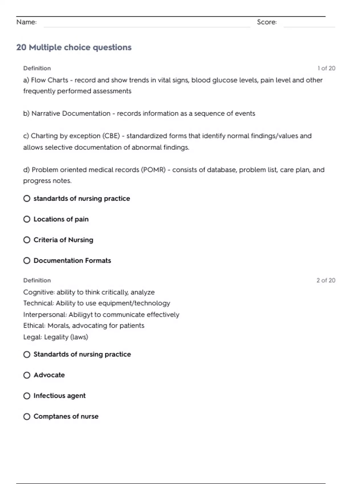 20 Multiple choice questions