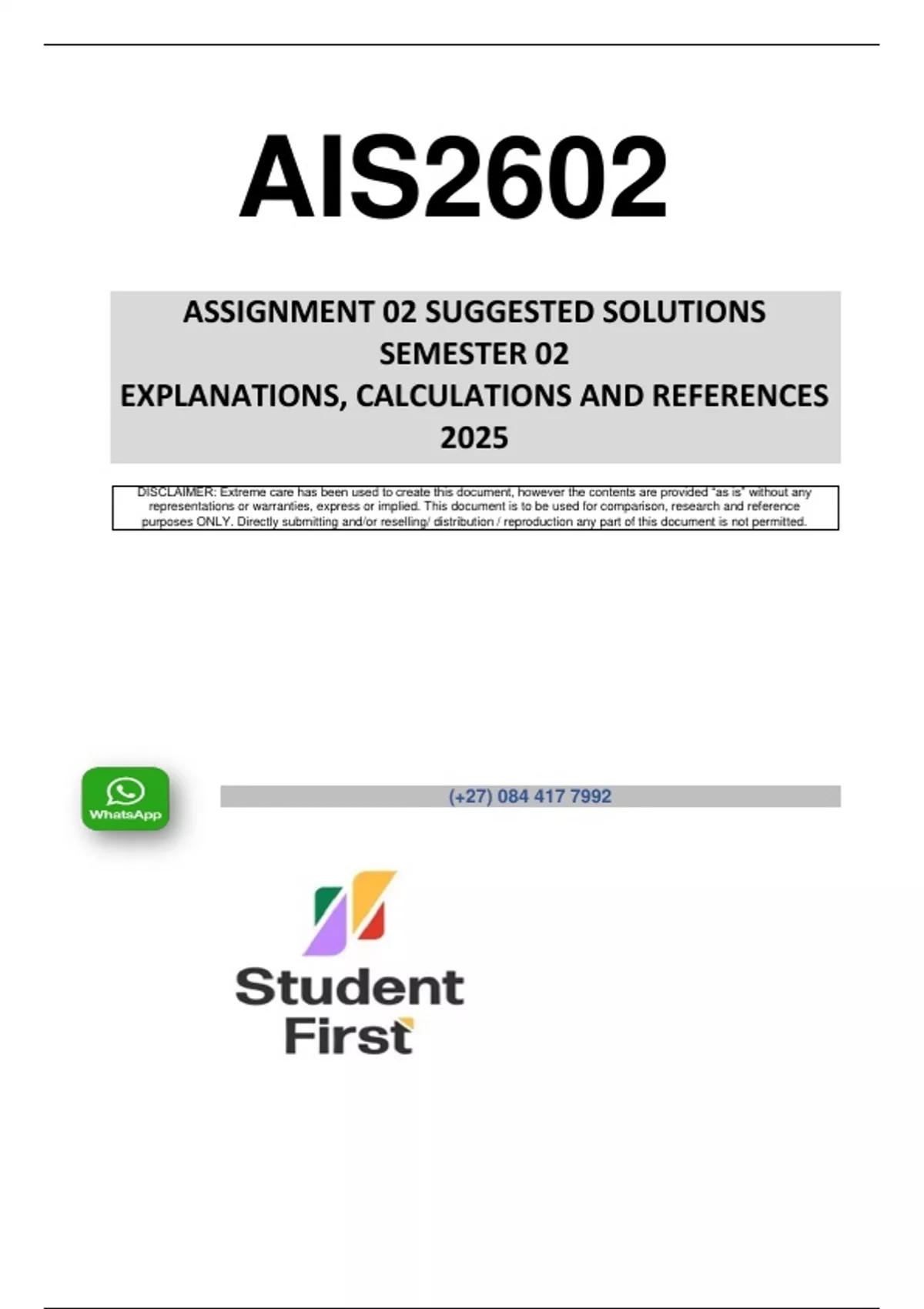 AIS2602 ASSIGNMENT 2( QUESTIONS & ANSWERS) SEMESTER 2 -2025