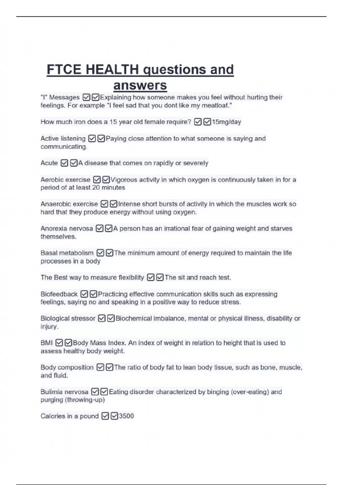 FTCE HEALTH QUESTIONS AND ANSWERS