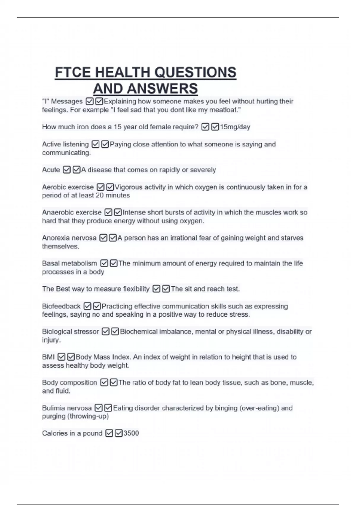 FTCE HEALTH QUESTIONS AND ANSWERS
