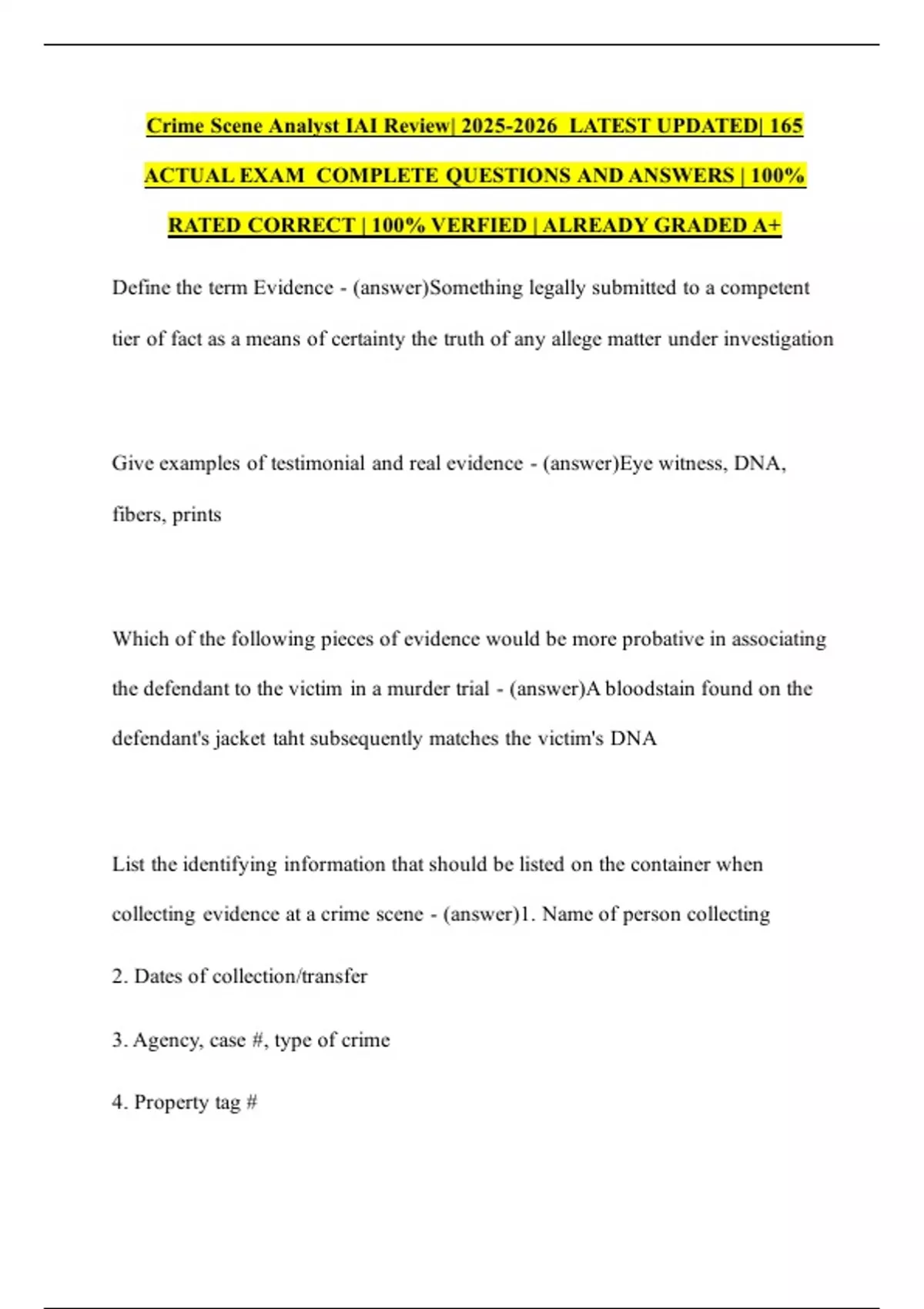 collecting evidence at a crime scene - (answer)1. Name of person collecting