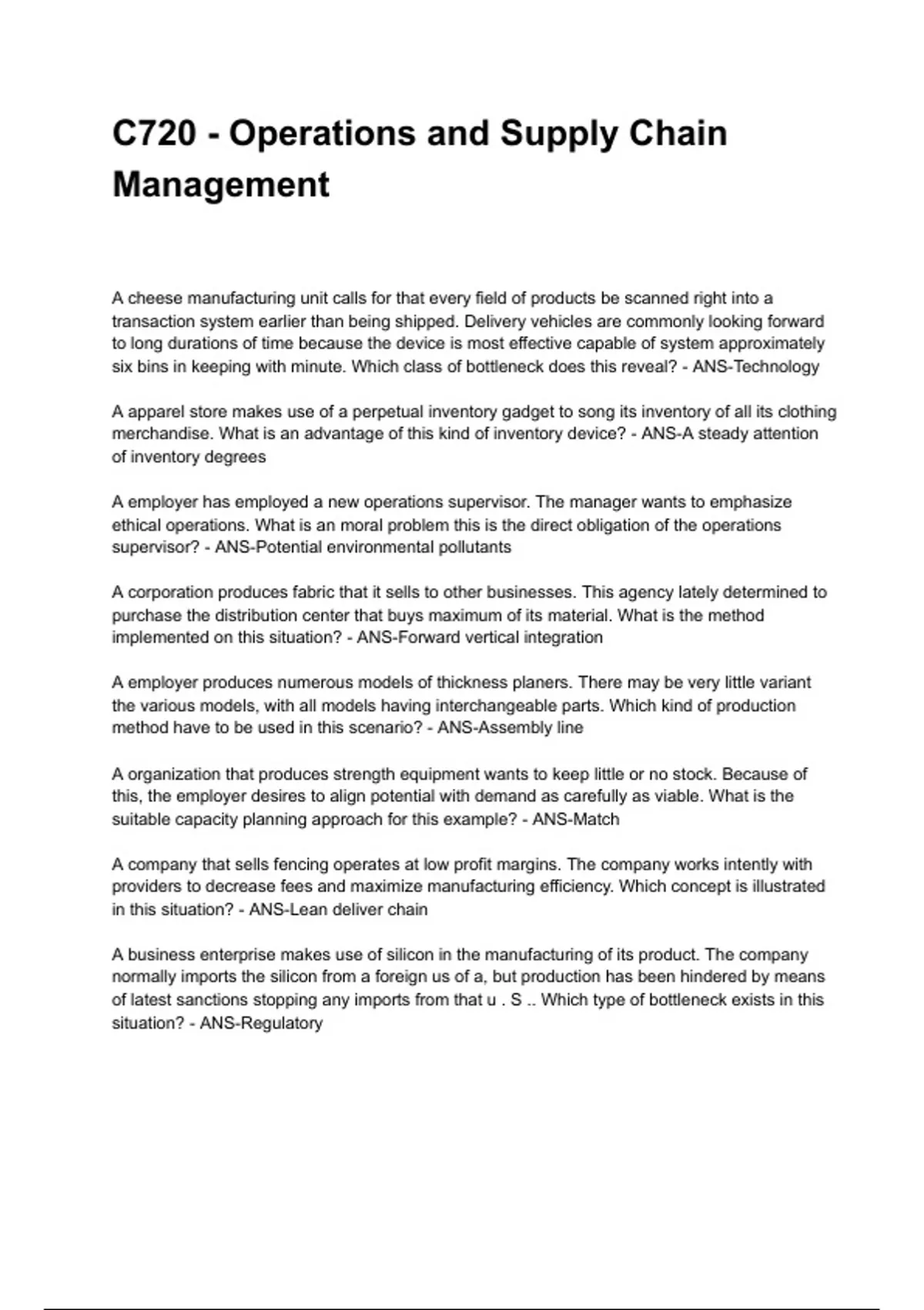 method implemented on this state of affairs? - ANS-Lean supply chain