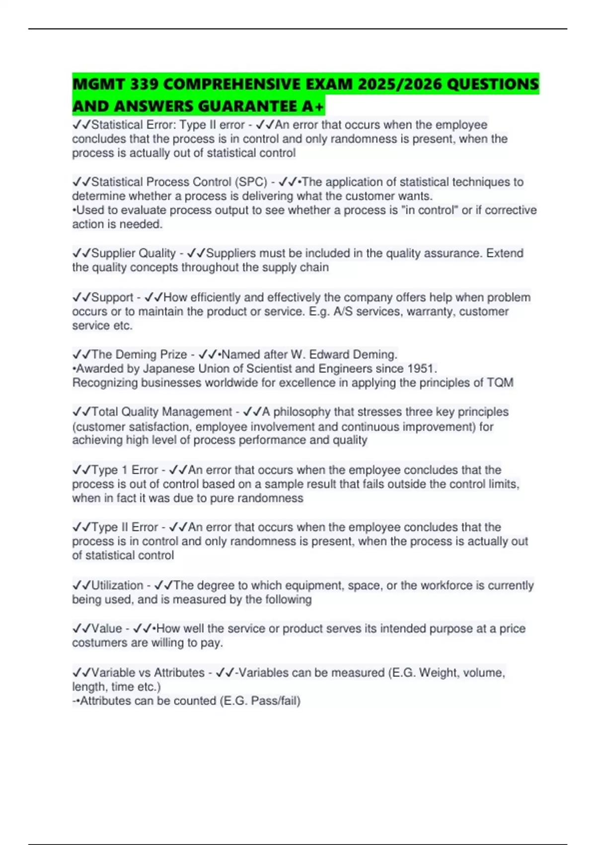 ✔✔Statistical Error: Type II error - ✔✔An error that occurs when the employee