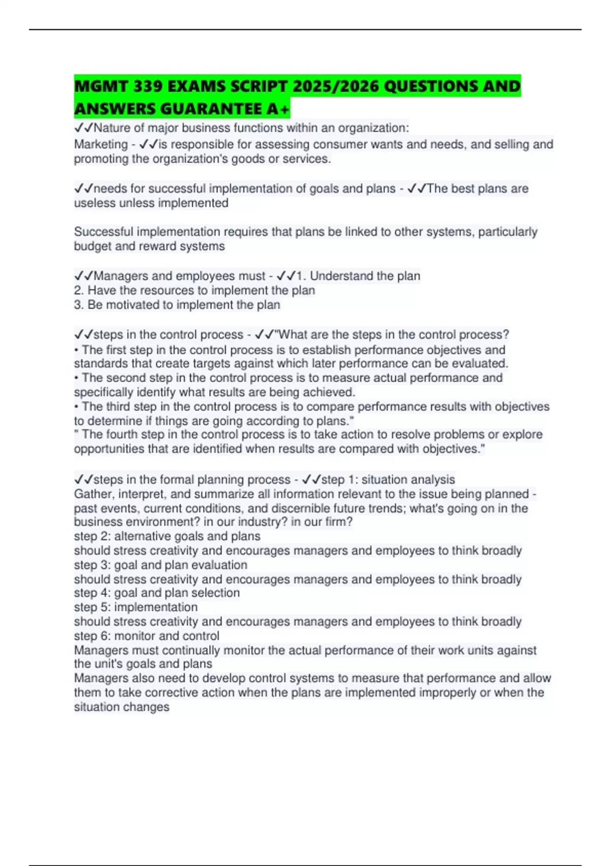 MGMT 339 EXAMS SCRIPT 2025/2026 QUESTIONS AND ANSWERS GUARANTEE A+