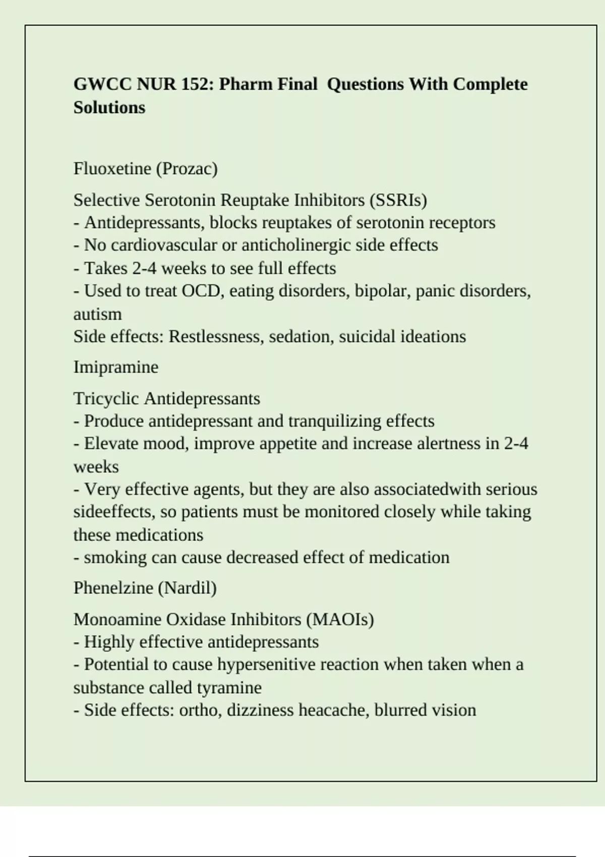- Antidepressants, blocks reuptakes of serotonin receptors