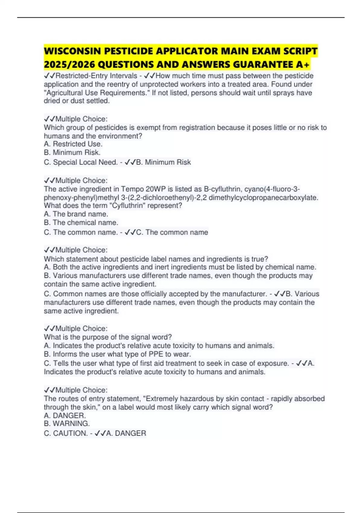 2025/2026 QUESTIONS AND ANSWERS GUARANTEE A+