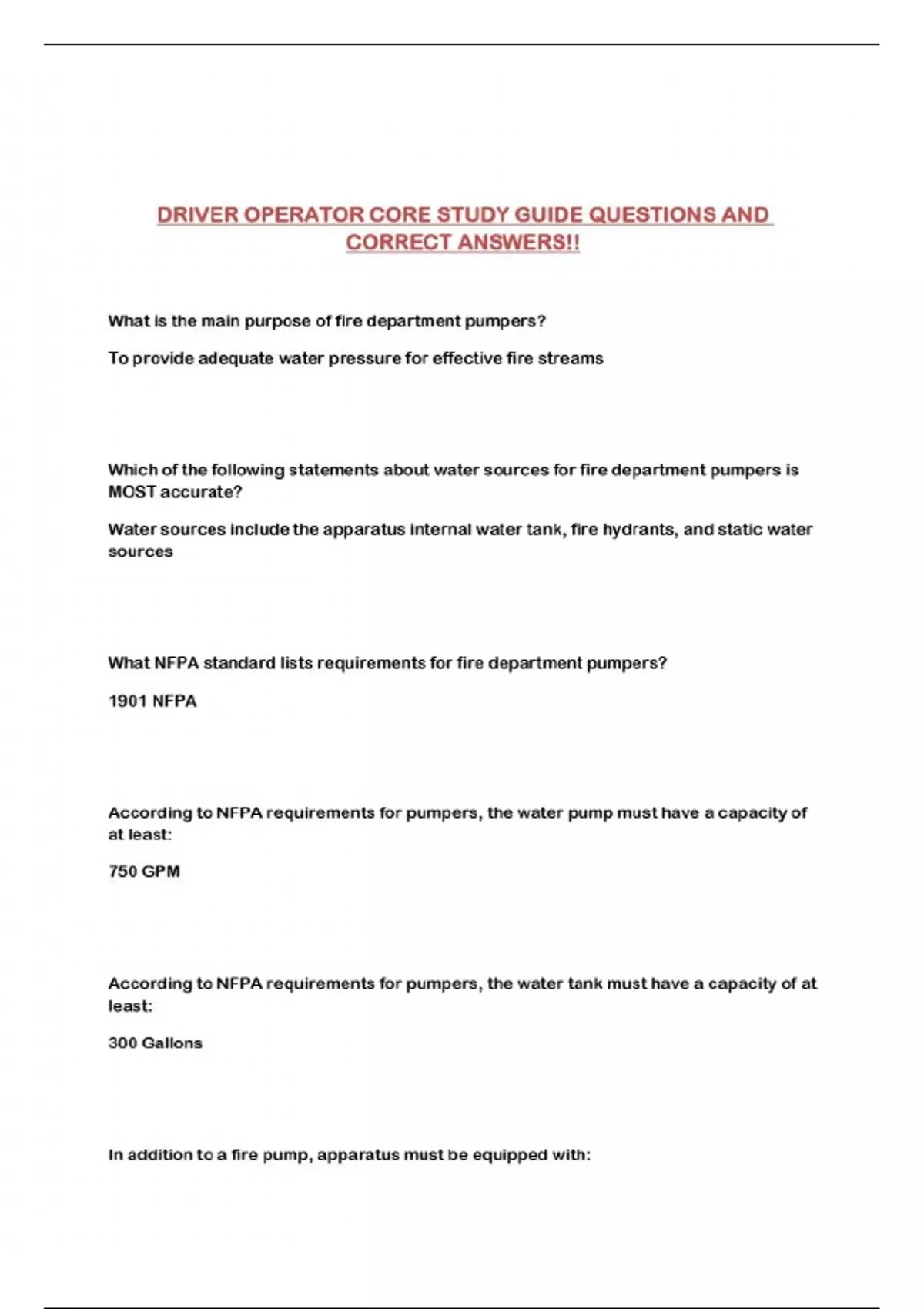 DRIVER OPERATOR CORE STUDY GUIDE QUESTIONS AND CORRECT ANSWERS!!