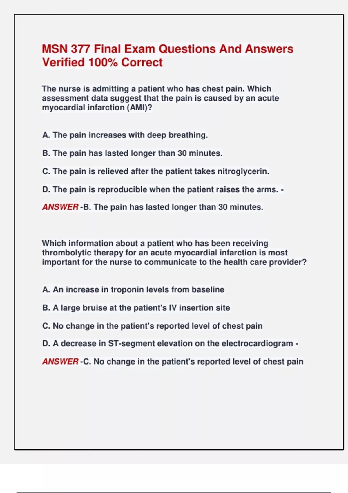 ANSWER -B. The pain has lasted longer than 30 minutes.