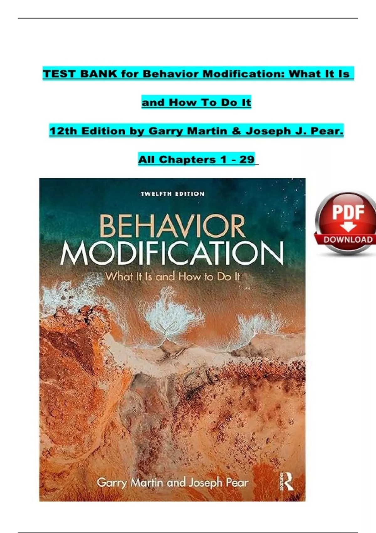 TEST BANK For Behavior Modification: What It Is and How To Do It, 12th Edition by Garry Martin & Joseph J. Pear, Verified Chapters 1 - 29, Complete Newest Version