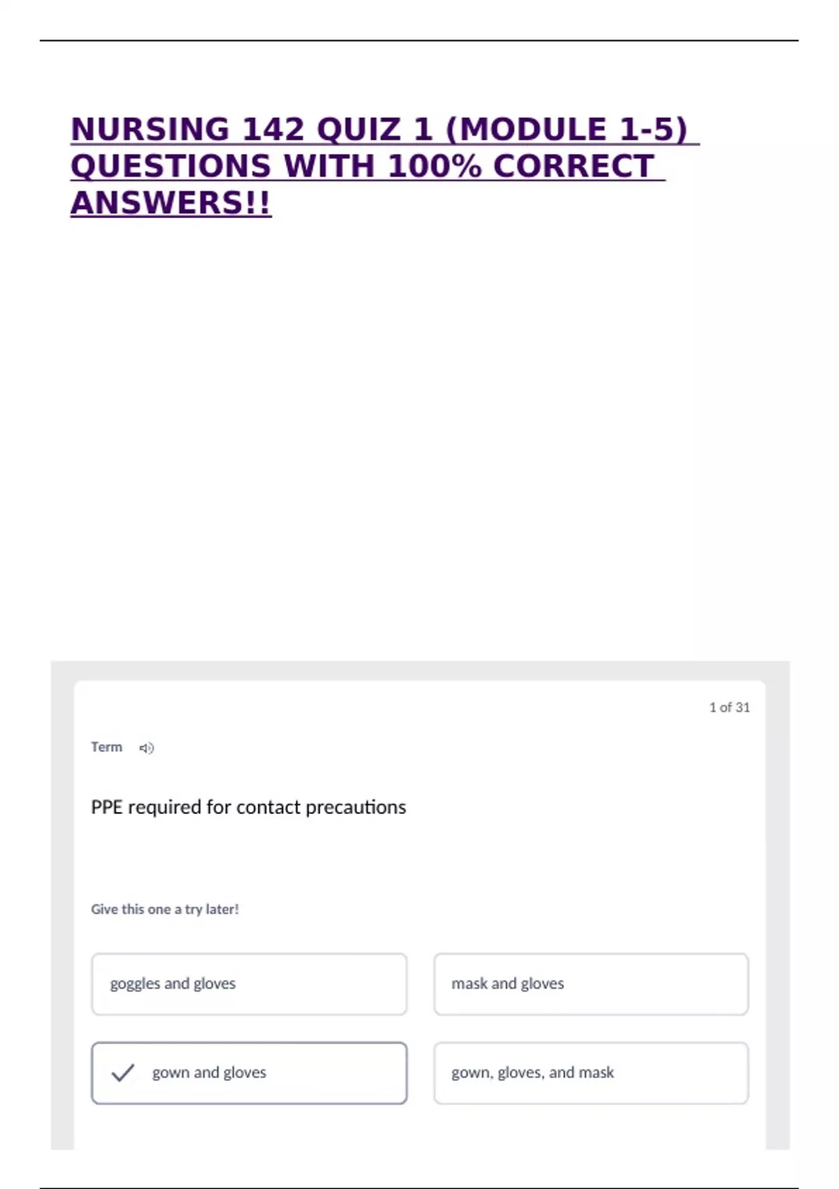 NURSING 142 QUIZ 1 (MODULE 1-5) QUESTIONS WITH 100% CORRECT ANSWERS!!