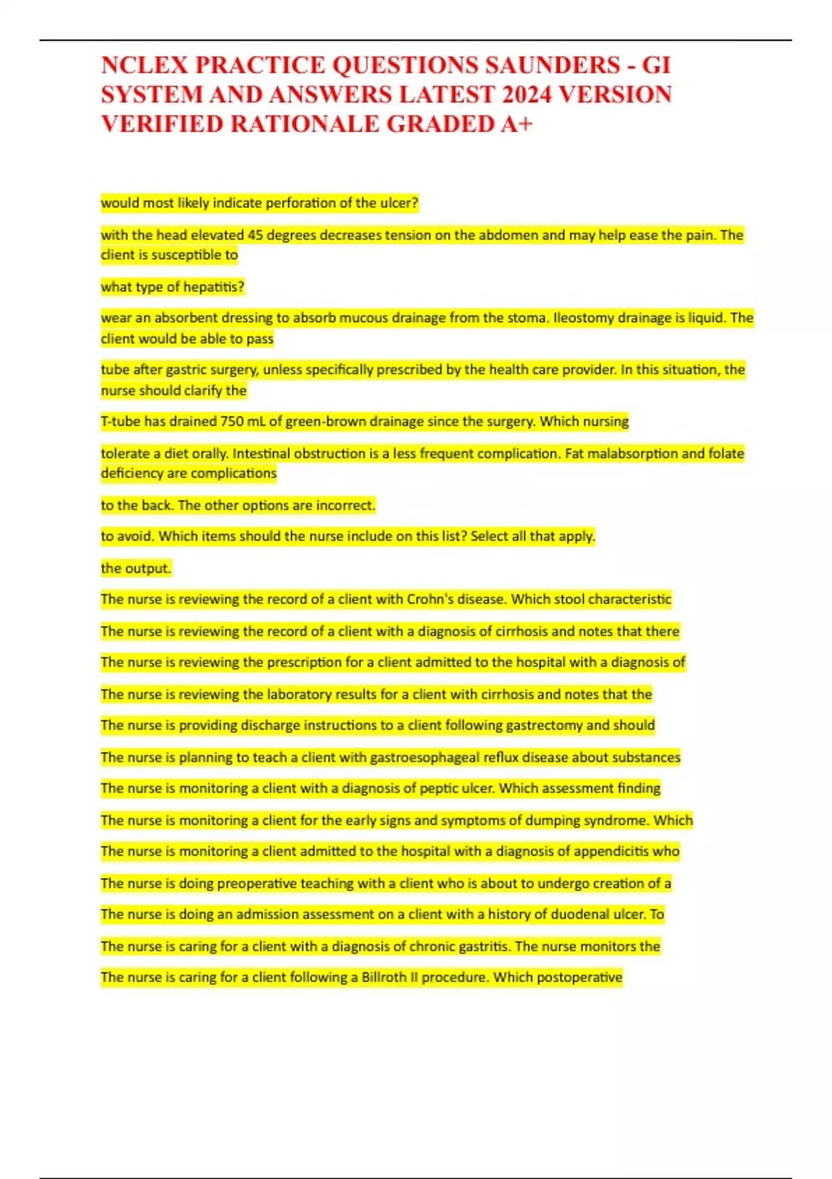 ,NCLEX PRACTICE QUESTIONS SAUNDERS - GI