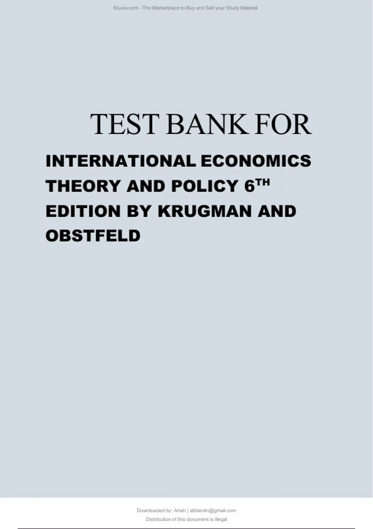 TEST BANK FOR INTERNATIONAL ECONOMICS THEORY AND POLICY 6TH EDITION