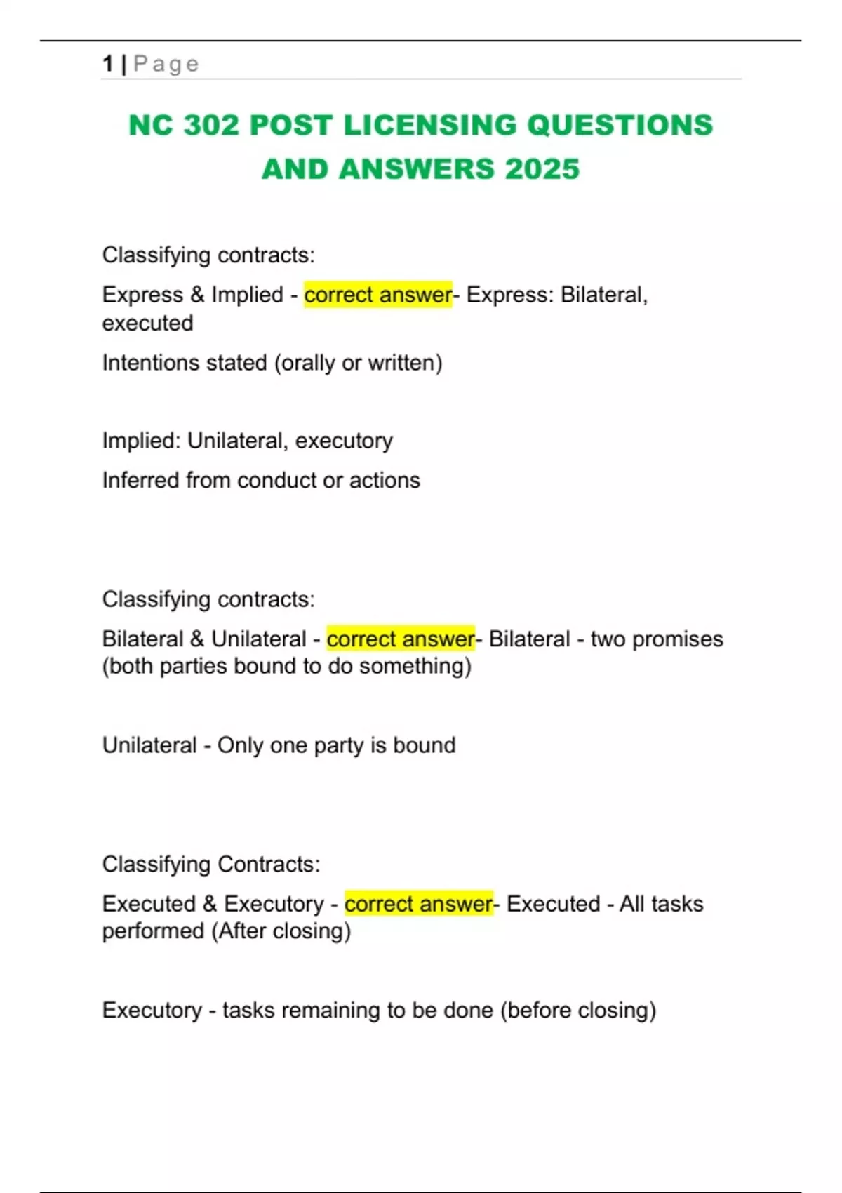 Executed & Executory - correct answer- Executed - All tasks