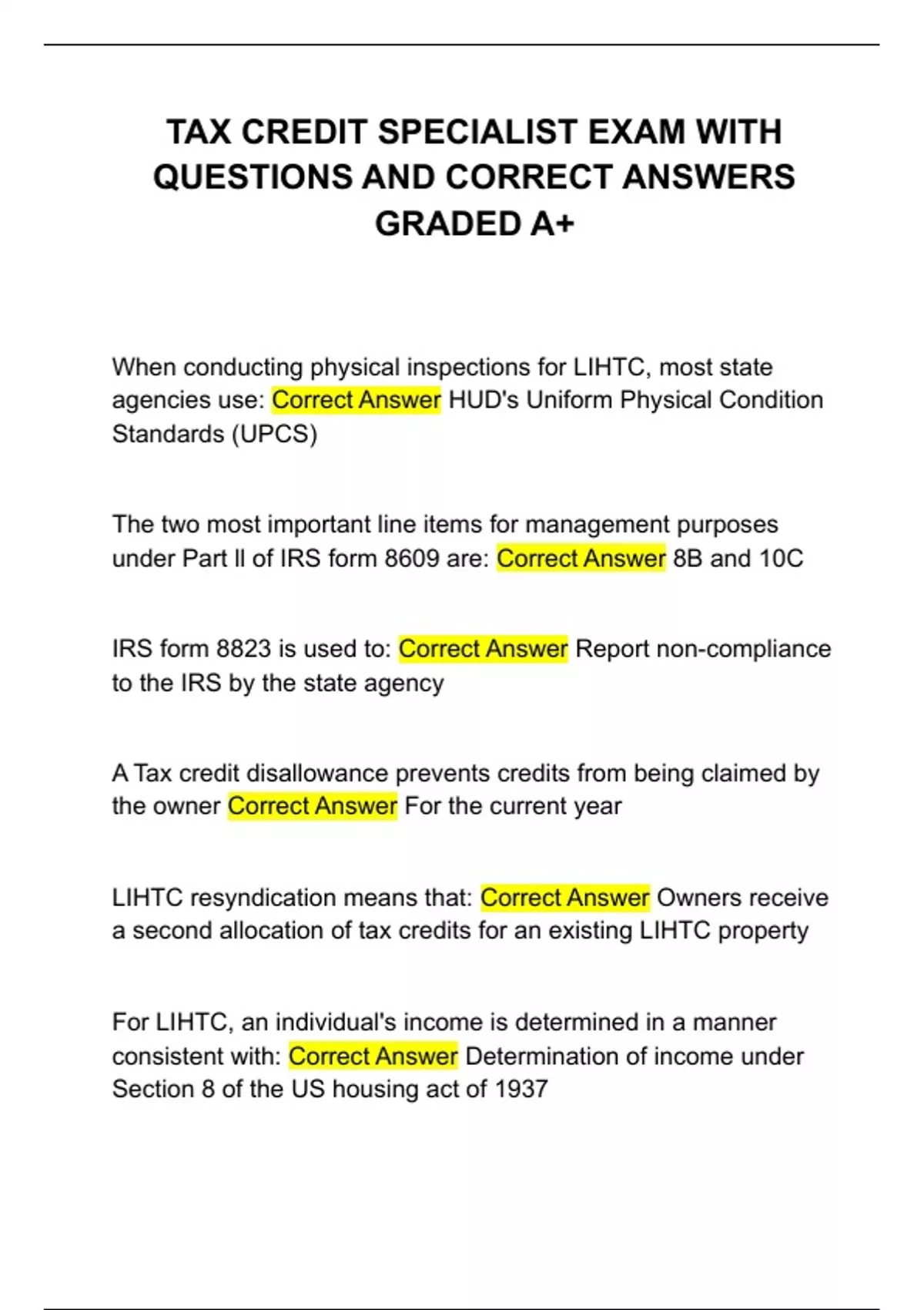 QUESTIONS AND CORRECT ANSWERS
