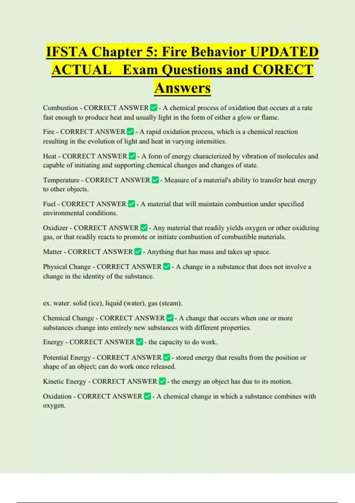 Fire - CORRECT ANSWER - A rapid oxidation process, which is a chemical reaction