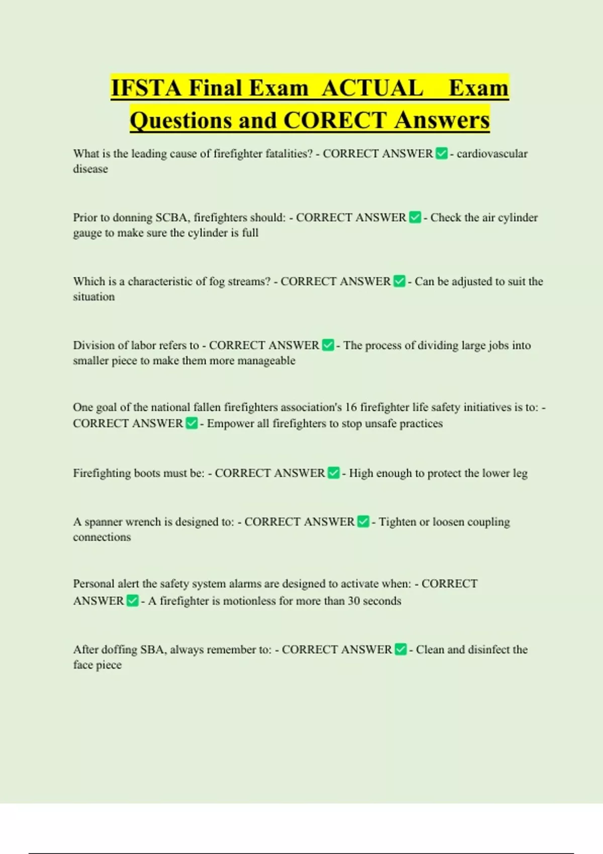 Questions and CORECT Answers