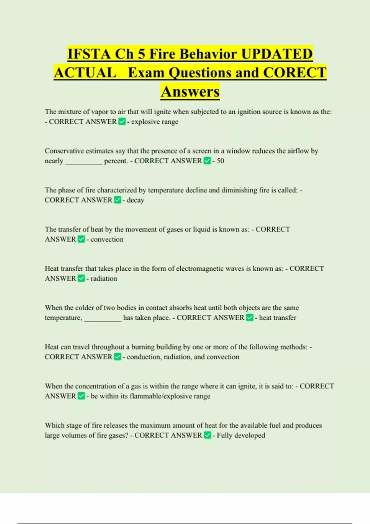 large volumes of fire gases? - CORRECT ANSWER - Fully developed