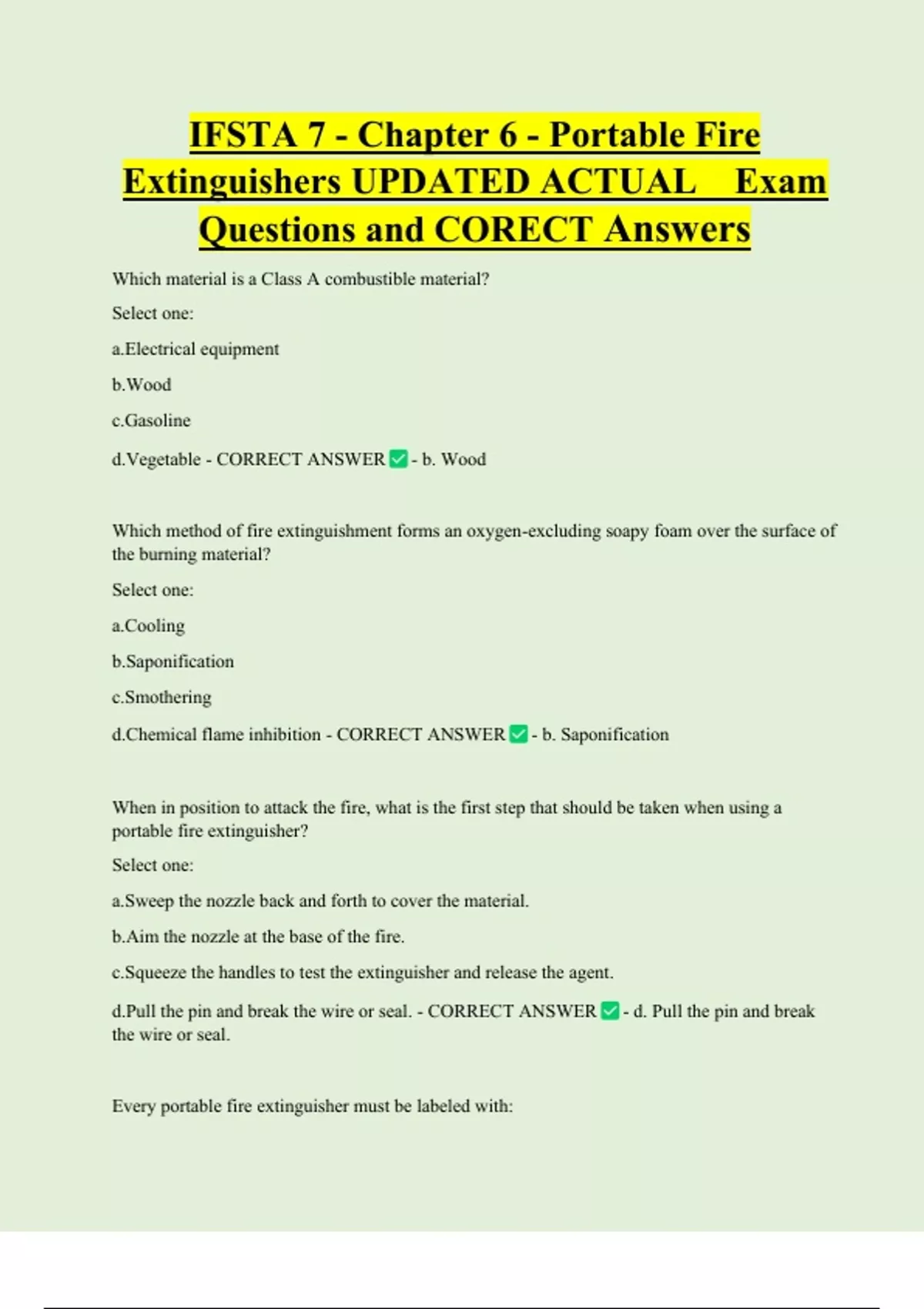 Extinguishers UPDATED ACTUAL Exam