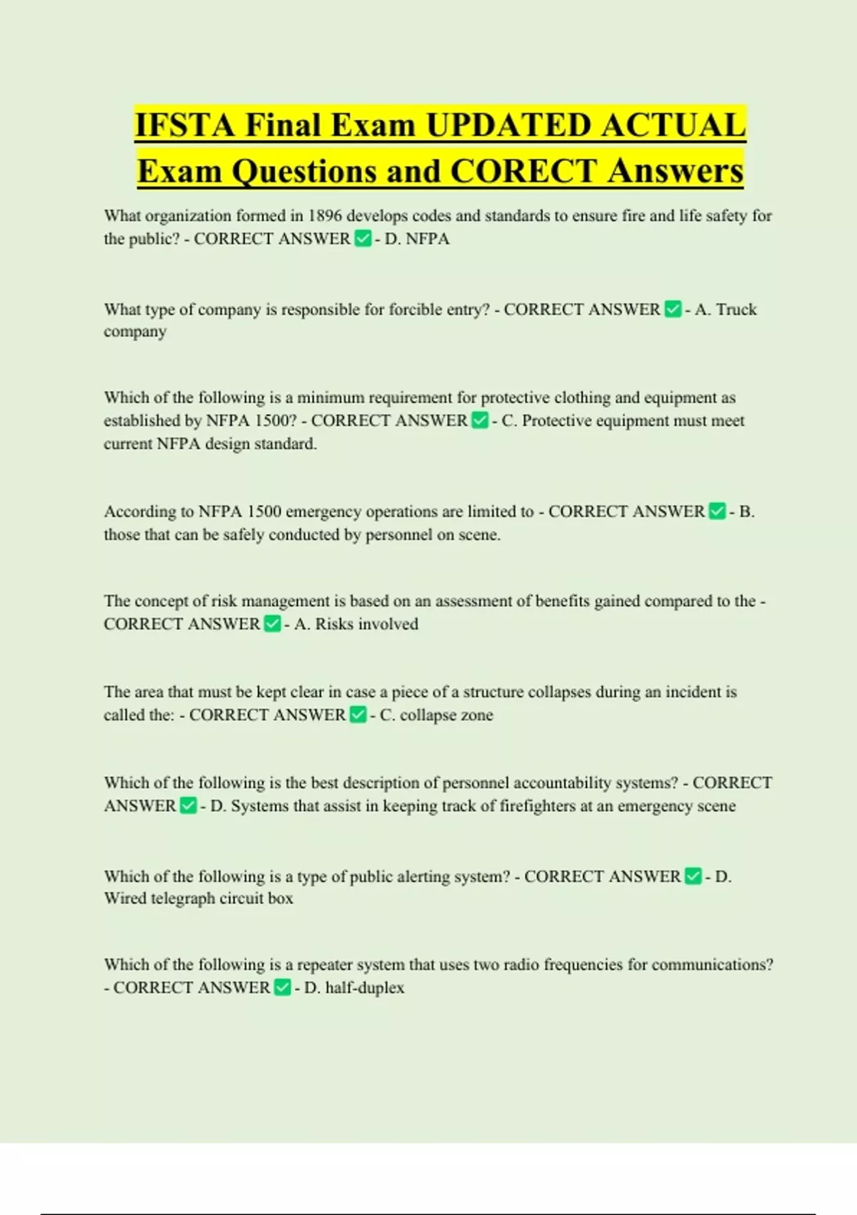the public? - CORRECT ANSWER - D. NFPA