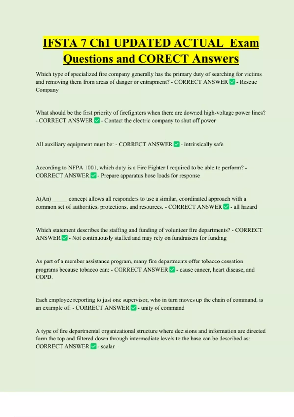 IFSTA 7 Ch1 UPDATED ACTUAL Exam Questions and CORECT Answers
