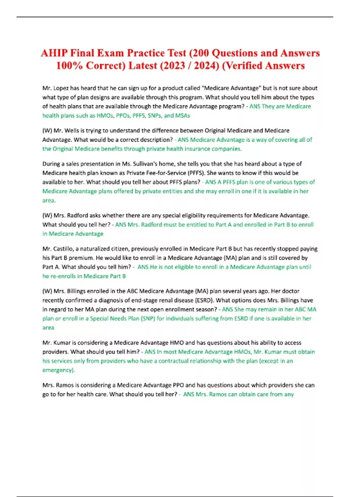 AHIP Final Exam Practice Test (200 Questions and Answers 100% Correct) Latest Edition () (Verified Answers)