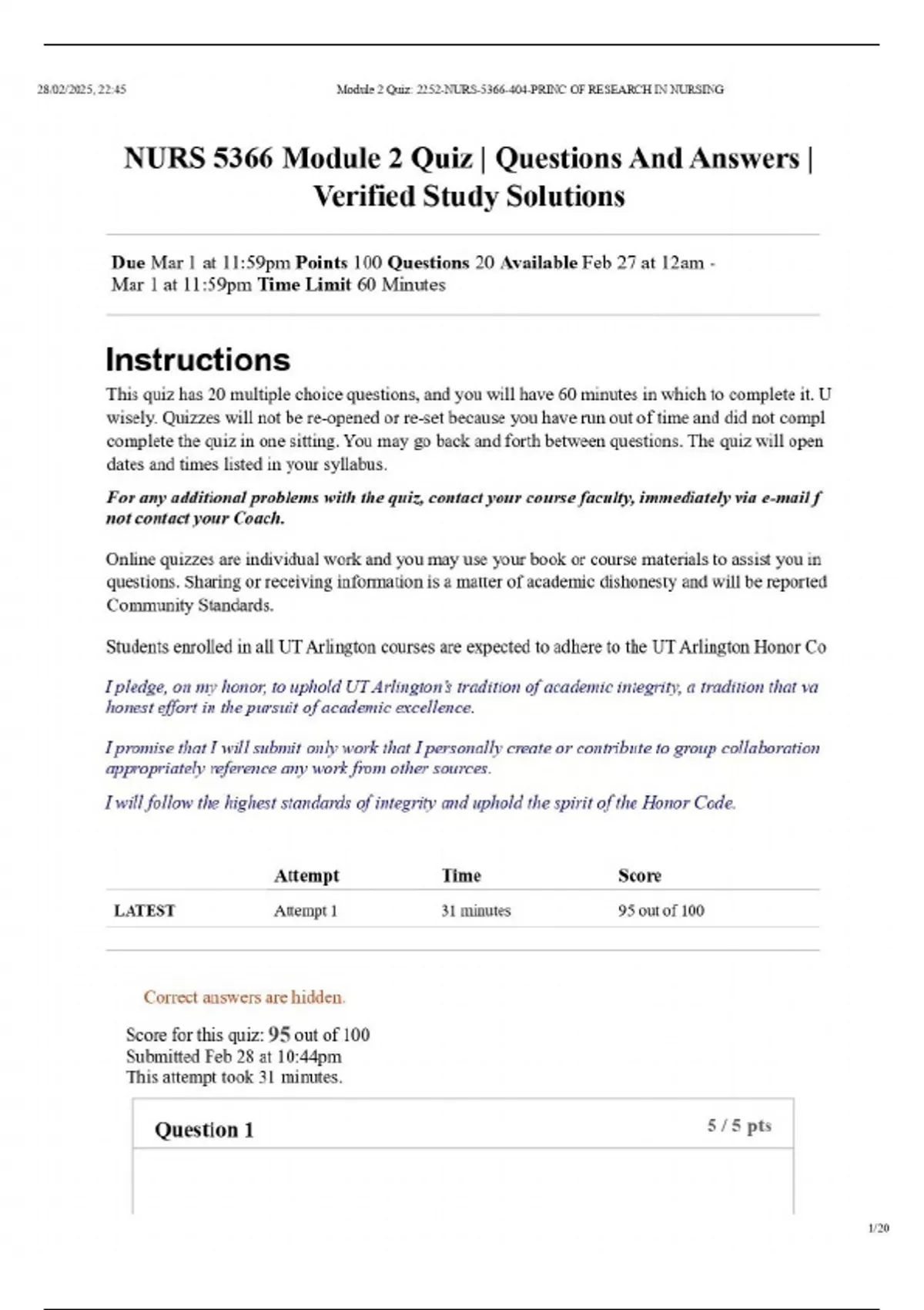 NURS 5366 Module 2 Quiz | Questions And Answers | Verified Study Solutions