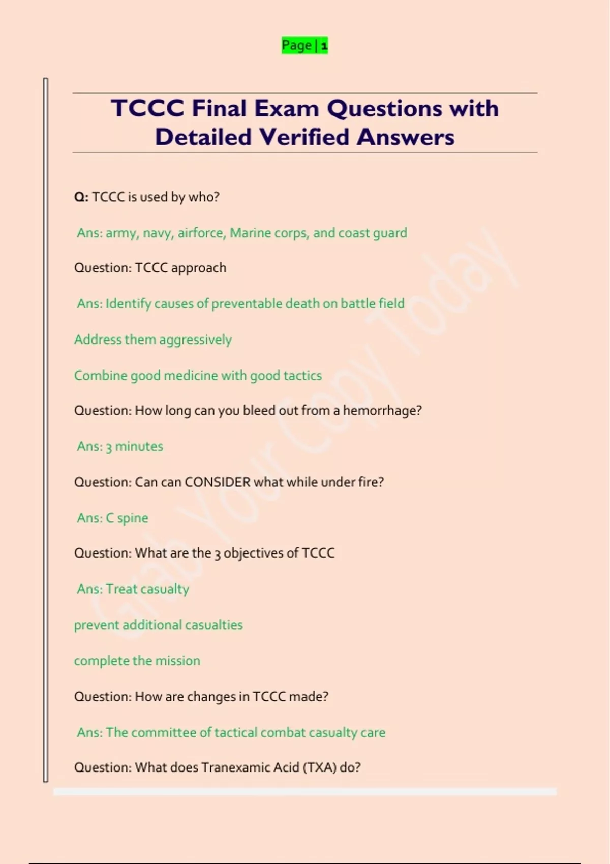 TCCC Final Exam Questions with Detailed Verified Answers