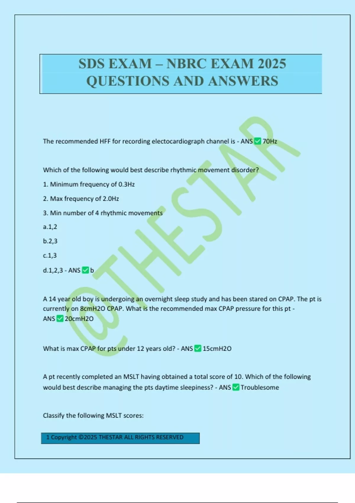 SDS EXAM – NBRC EXAM 2025 QUESTIONS AND ANSWERS