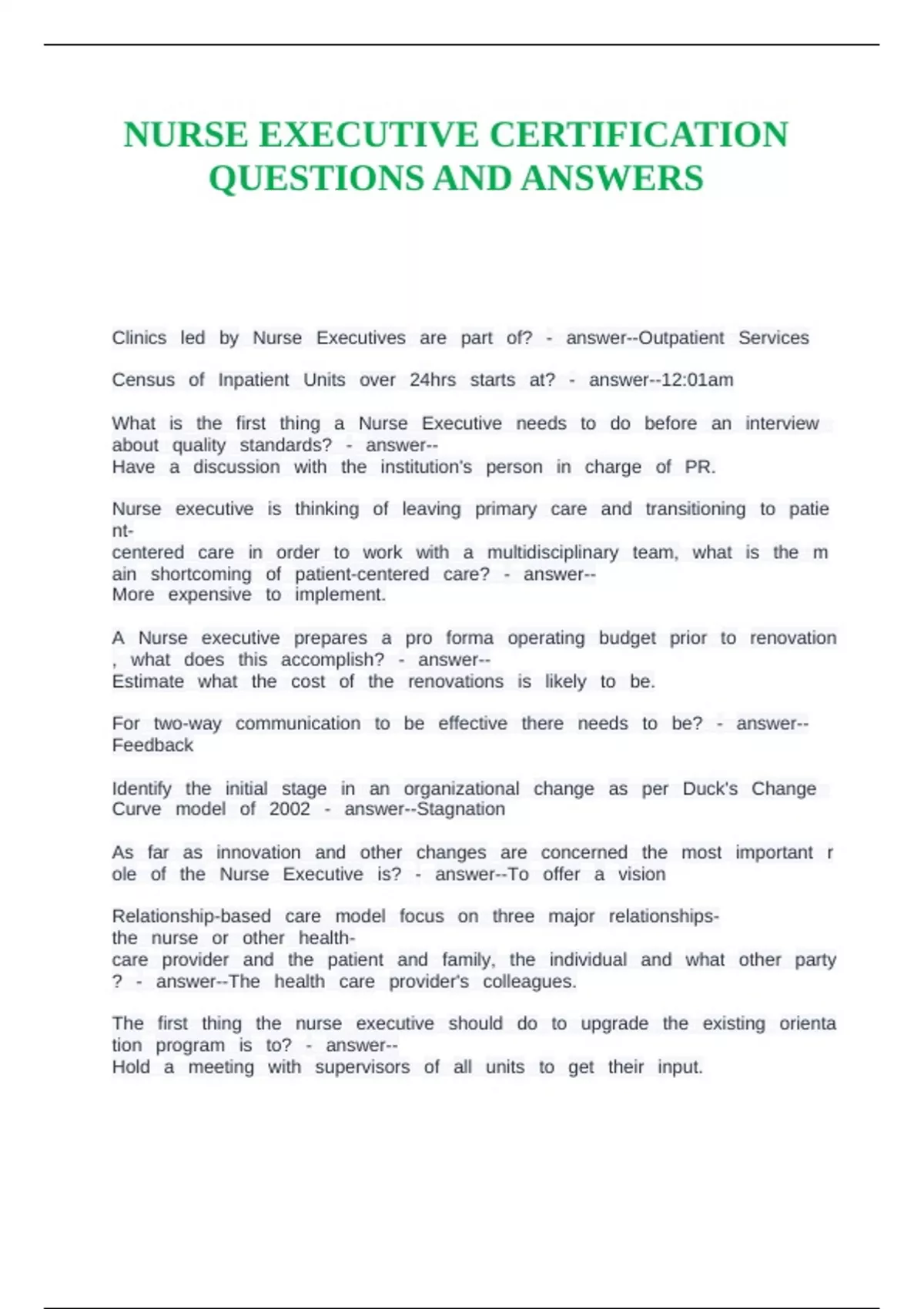 NURSE EXECUTIVE CERTIFICATION QUESTIONS AND ANSWERS