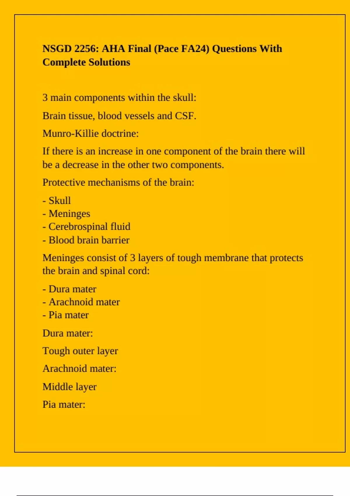 Brain tissue, blood vessels and CSF.