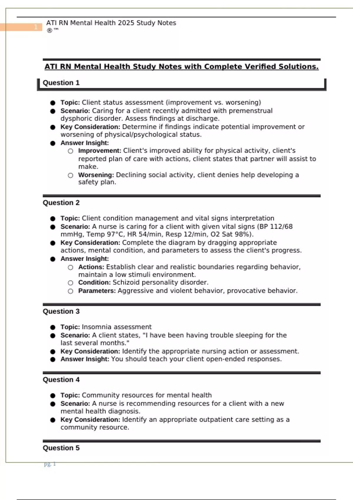 ATI RN Mental Health Study Notes with Complete Verified Solutions.