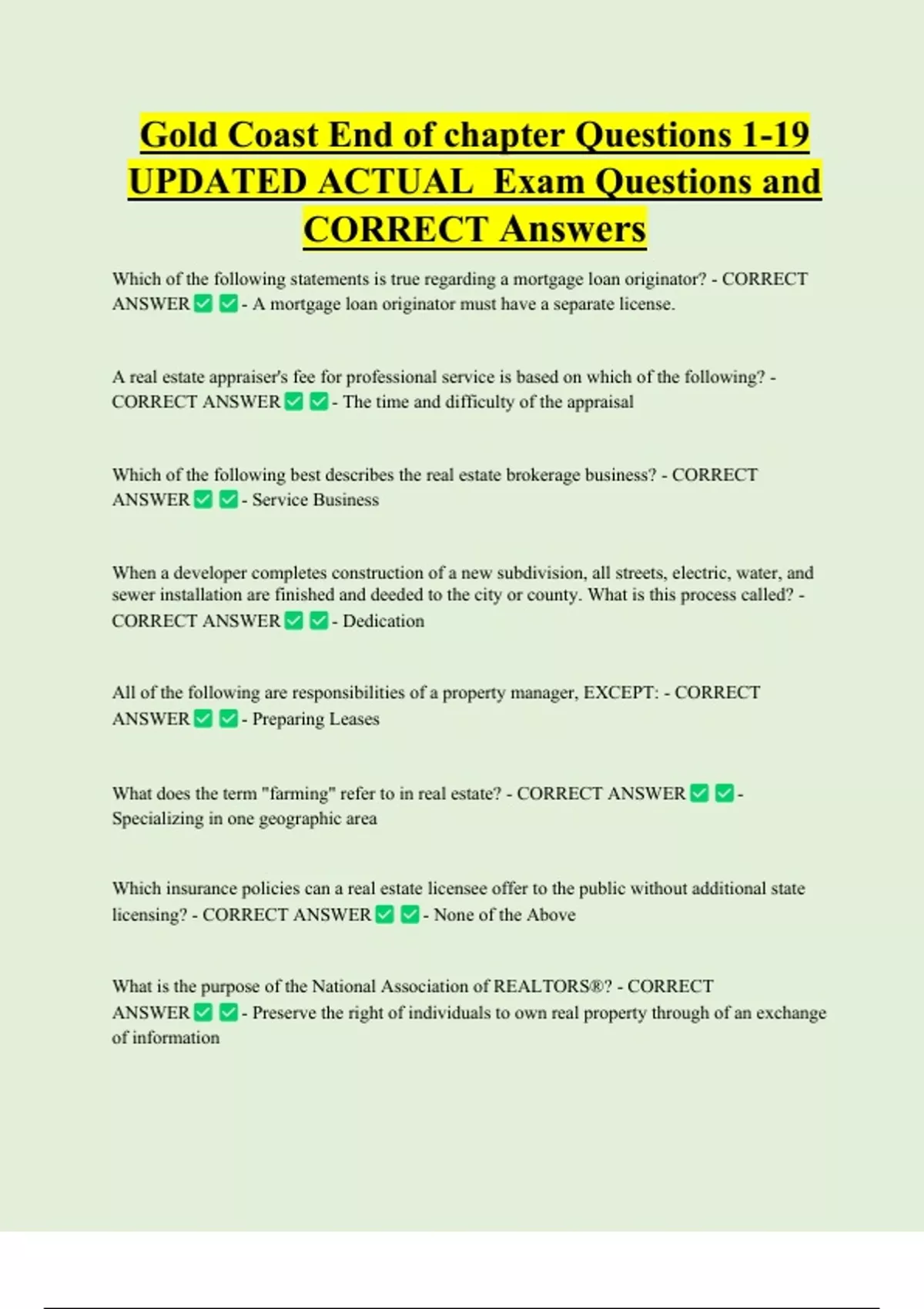 Gold Coast End of chapter Questions 1-19 UPDATED ACTUAL Exam Questions and CORRECT Answers