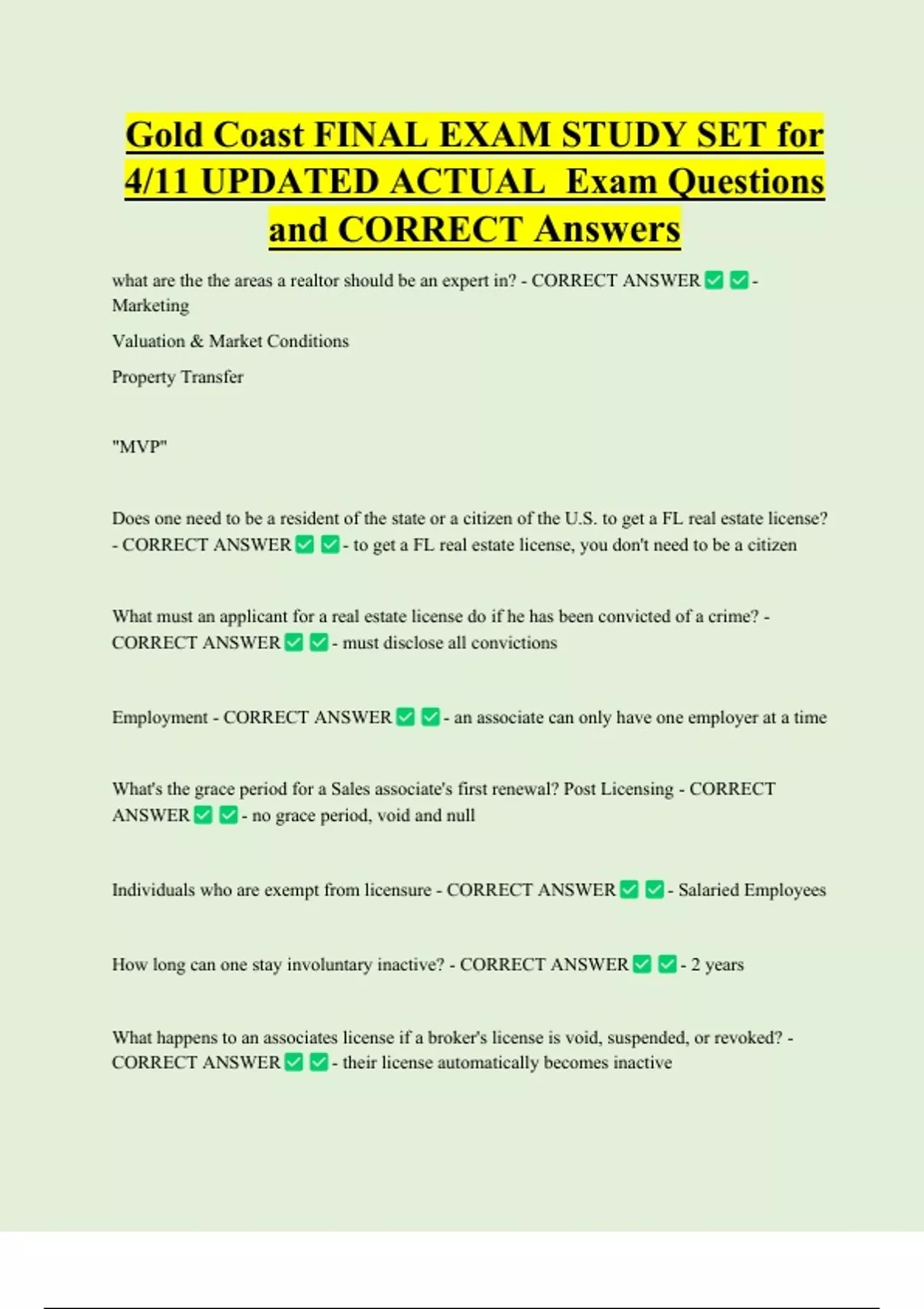 4/11 UPDATED ACTUAL Exam Questions