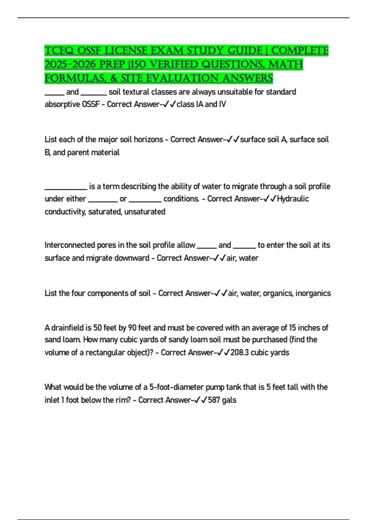 volume of a rectangular object)? - Correct Answer-✔✔208.3 cubic yards