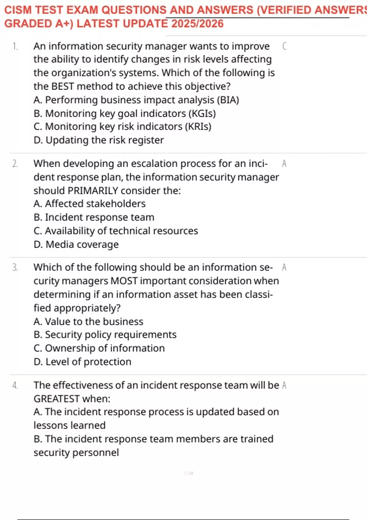 CISM TEST EXAM QUESTIONS AND ANSWERS (VERIFIED ANSWERS GRADED A+) LATEST UPDATE 2025/2026