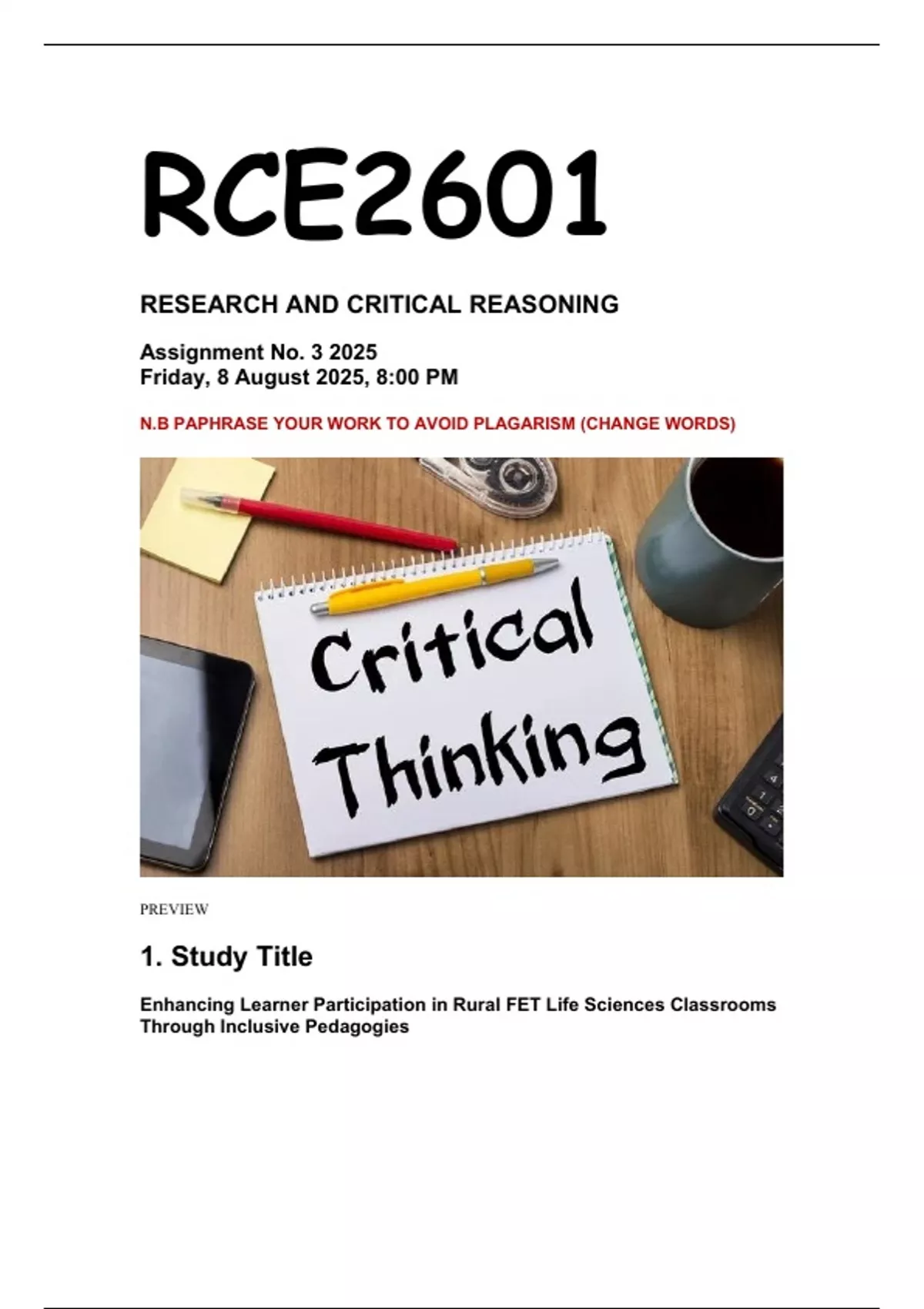RCE2601 ASSIGNMENT 3 2025