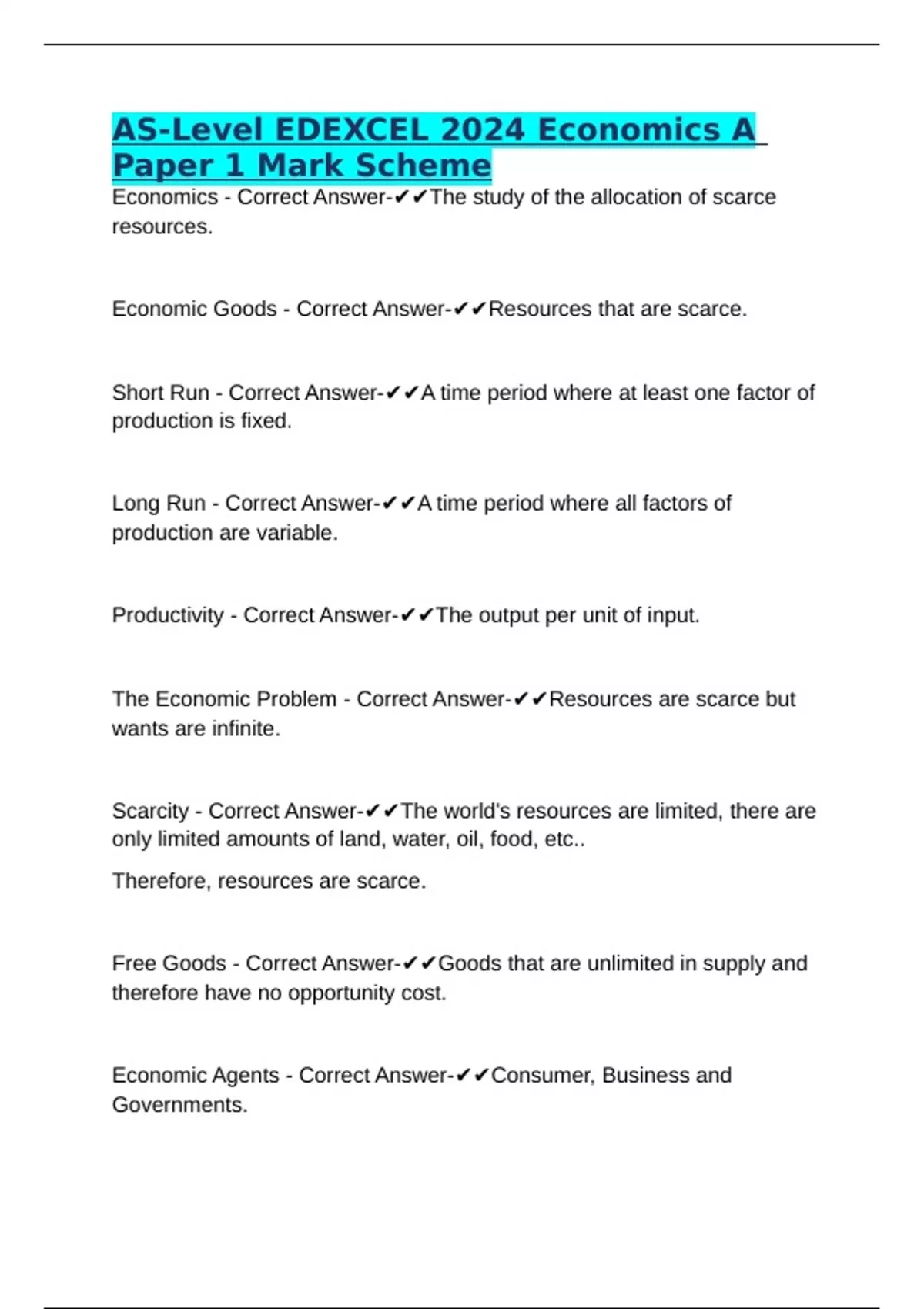 The Economic Problem - Correct Answer-✔✔Resources are scarce but