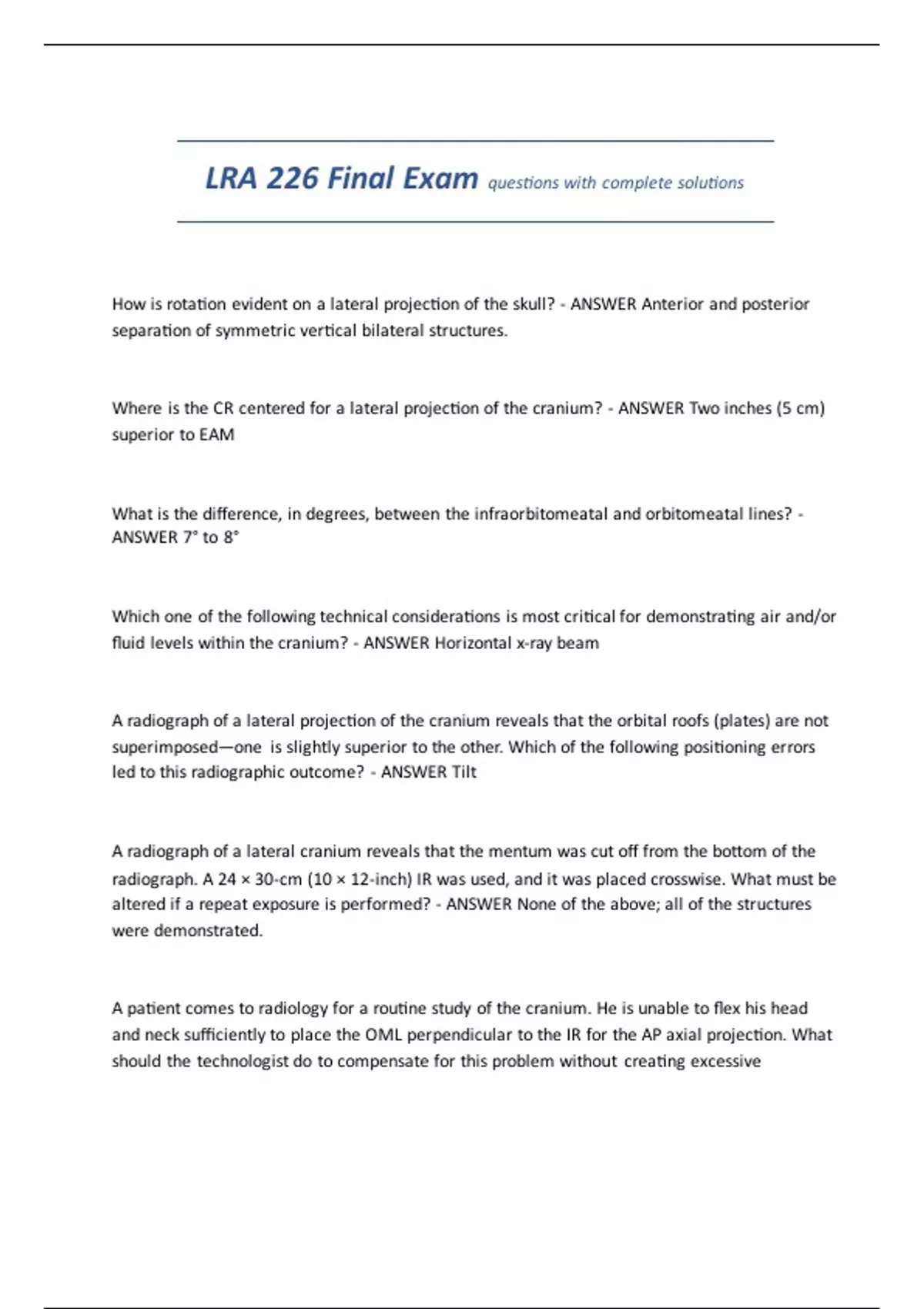 fluid levels within the cranium? - ANSWER Horizontal x-ray beam