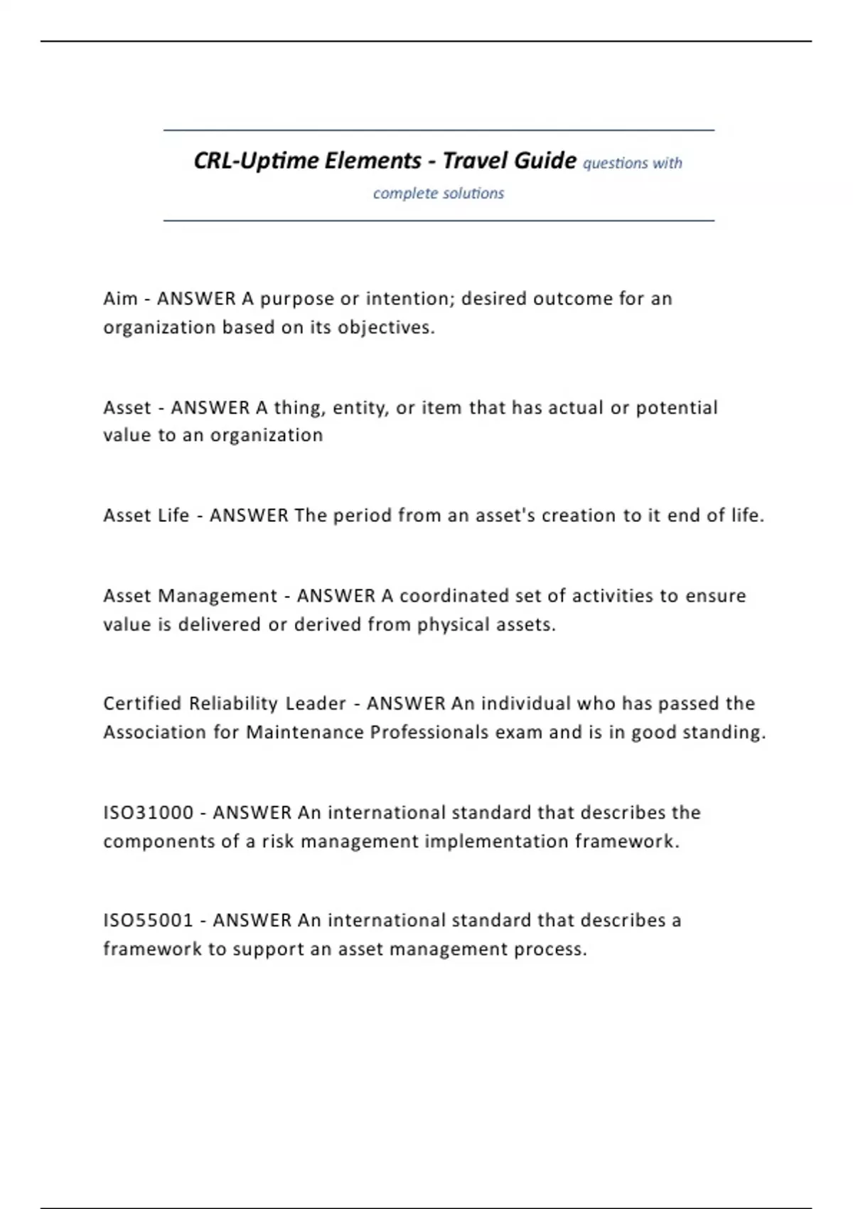 Certified Reliability Leader - ANSWER An individual who has passed the