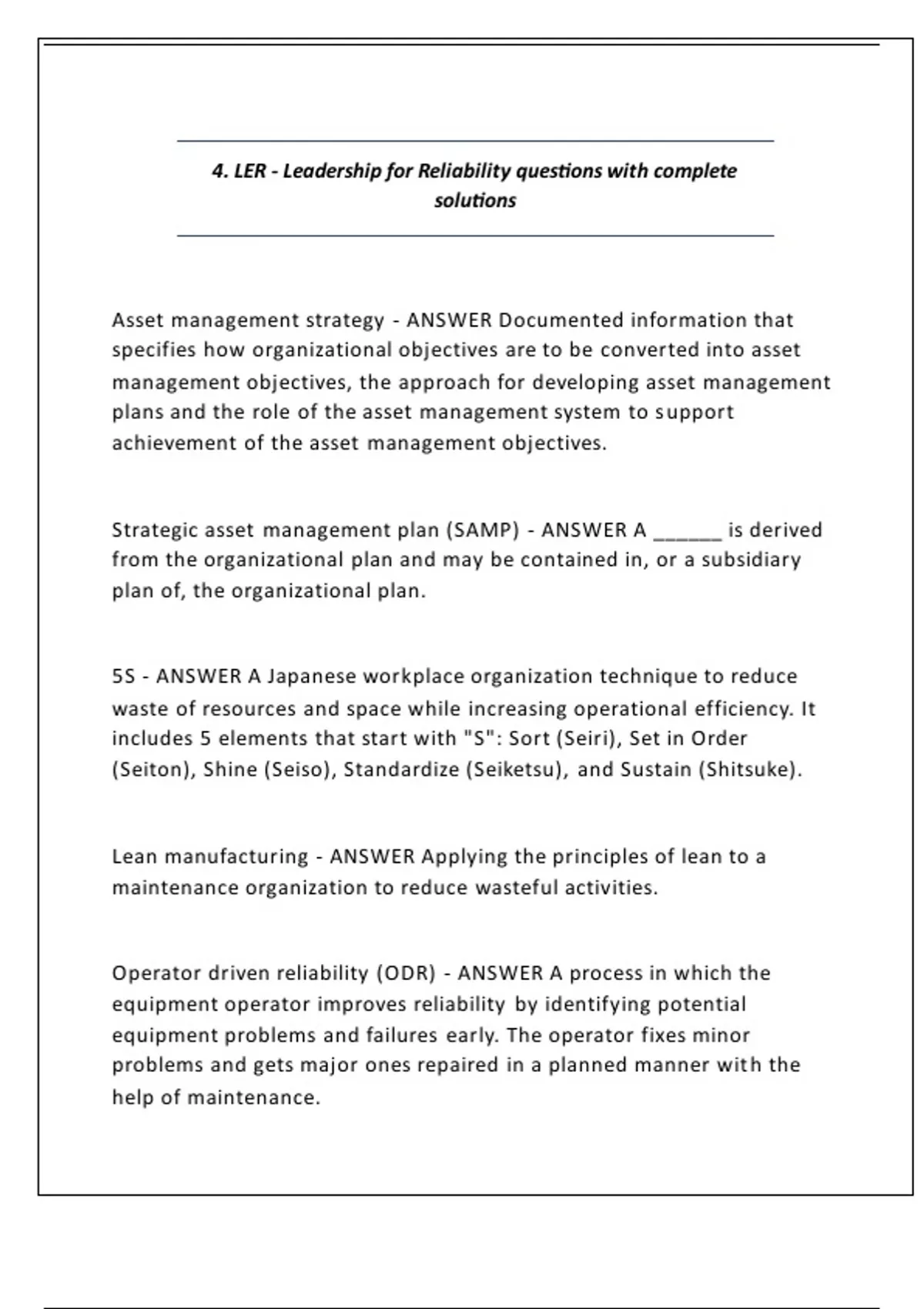 5S - ANSWER A Japanese workplace organization technique to reduce