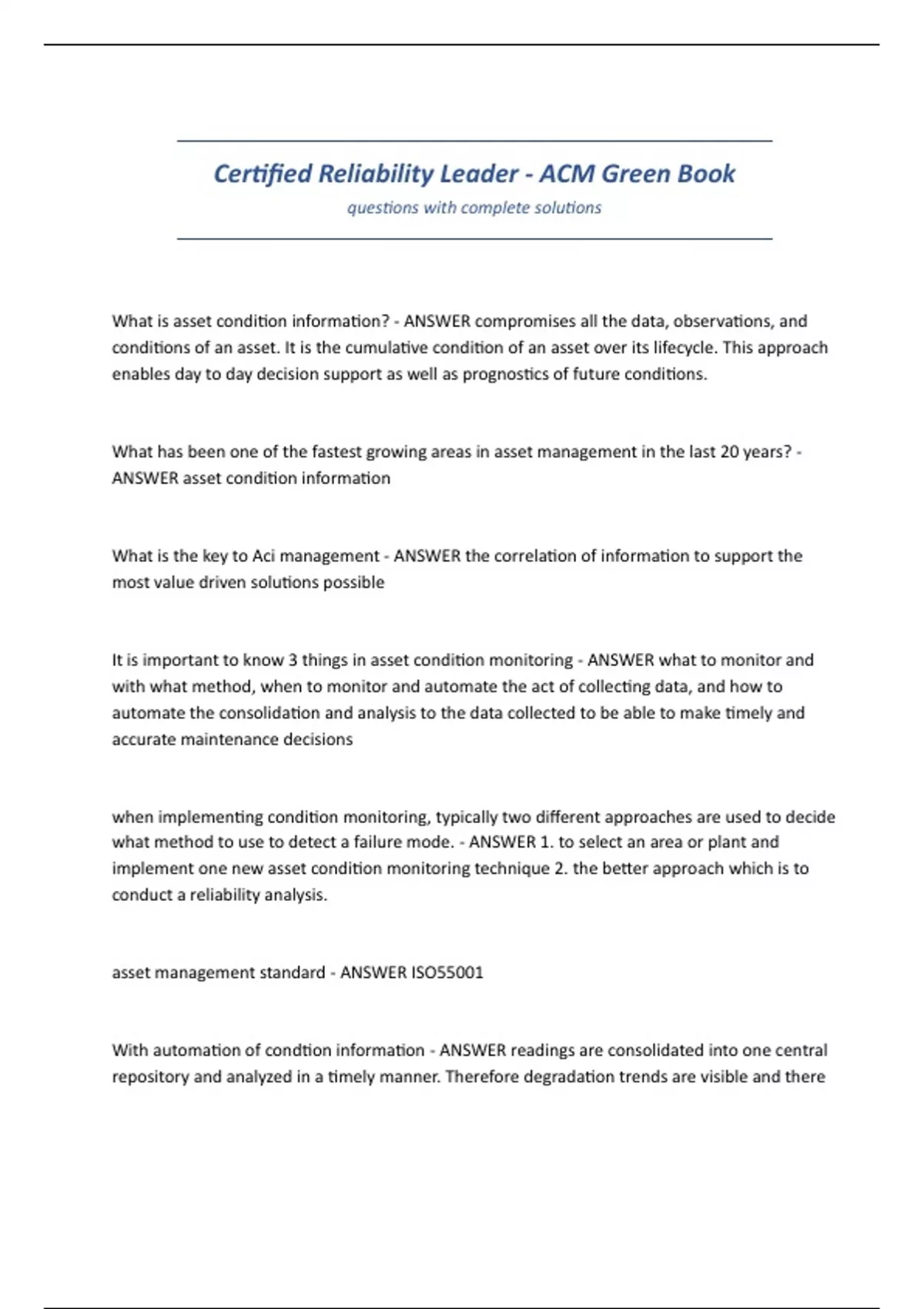 Certified Reliability Leader - ACM Green Book questions with complete solutions