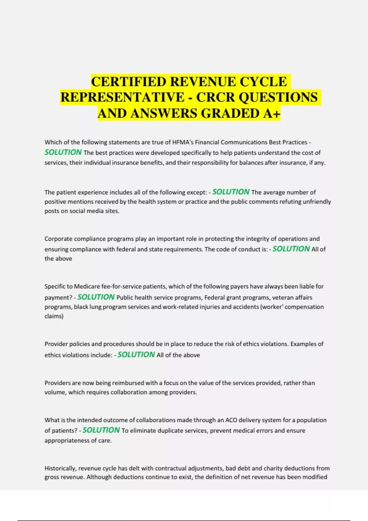 Historically, revenue cycle has delt with contractual adjustments, bad debt and charity deductions from